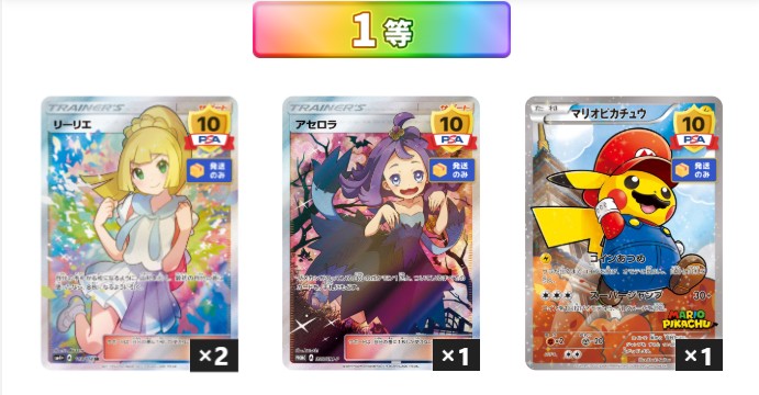 マリオピカチュウ(プレミアムキラカード294/XY-P)のPSA10認定枚数は、全世界で約1,135枚程度とされています。発行枚数自体が少ないことに加え、その中で最高評価を受けた枚数はさらに限られているため、PSA10品は極めて希少です。