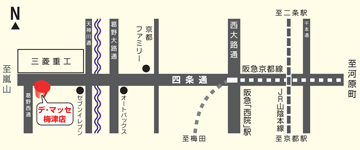 京都市右京区梅津南広町、四条通と葛野西通交差点の角にありアクセス良好 。