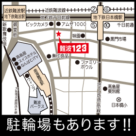 | 交 通 | 御堂筋線難波駅より東へ5分。アムザ1000さんとNGKさんの間です。 |