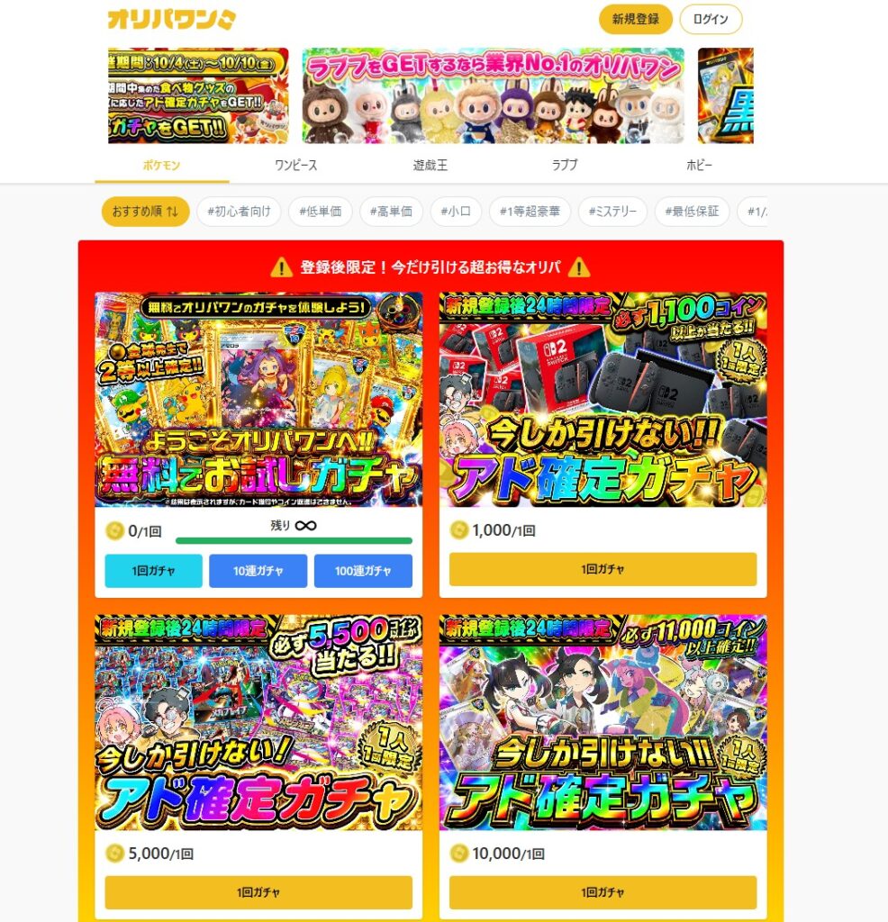 オリパワンは2024年4月に設立された新しいオンラインオリパサイトで、派手なガチャ演出と充実したキャンペーンが話題を集めています。