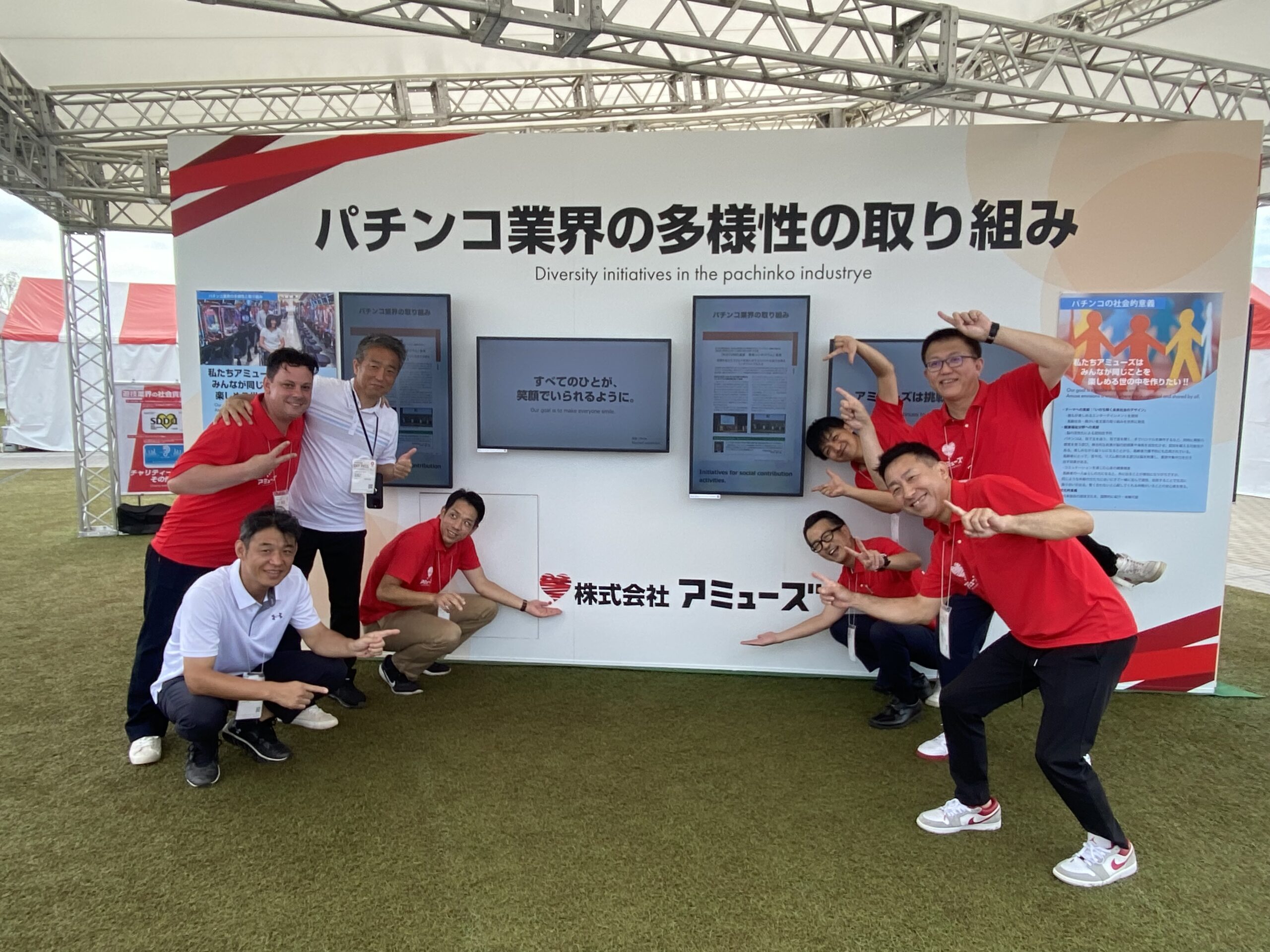 ブーステーマは「すべての人が笑顔でいられるように」「パチンコ業界の多様性の取り組み」。 パチンコ業界が進めてきた多様性社会への取り組みやアミューズグループの社会貢献活動について、 幅広い方々に直接知っていただく機会となりました。 当日は車椅子アスリートの方や業界関係者、取引先企業の皆様など、多くのお客様にご来場いただきました。