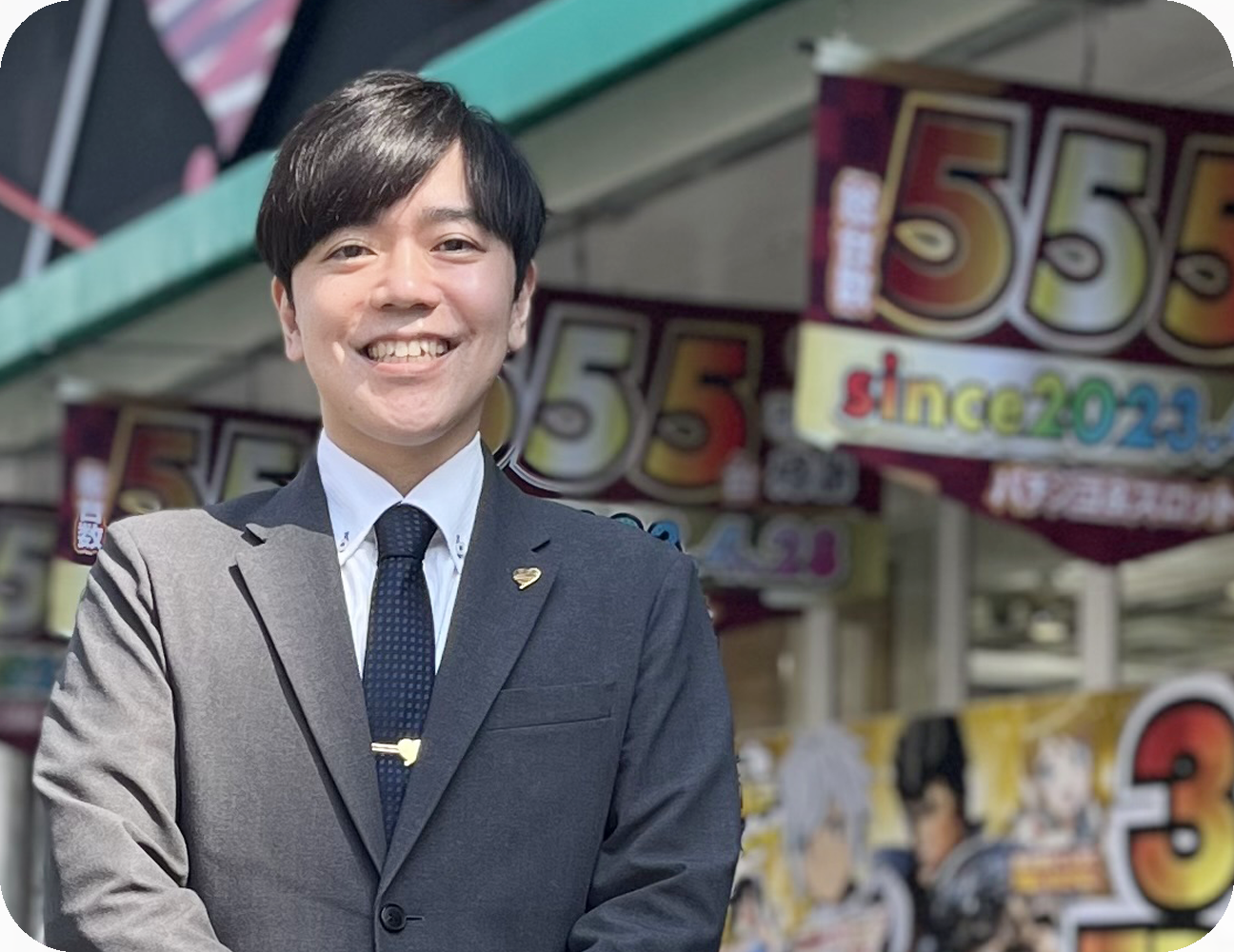 入社前はパチンコ業界に対して「厳しい」「難しい」というイメージを持っていましたが実際に働いてみると、お客様とのコミュニケーションやチームワークの大切さを実感できるやりがいのある仕事でした。特にアミューズは、お客様に笑顔を届けることを第一に考えているため、温かい雰囲気の中で成長できる環境だと感じています。